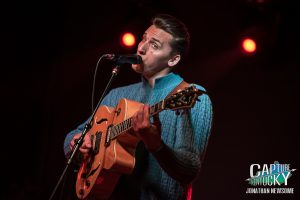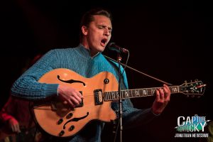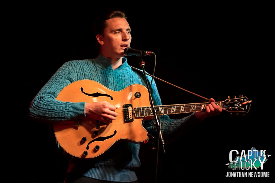 I will say though, had you told me that I’d be seeing a young man 6’6″ wearing a sweater, slacks, and black and white wingtip shoes while singing these songs, I probably would’ve thought you were pulling my leg. Partner those up with the pompadour, high-strapped guitar and the occasional Elvis twitches though, and by golly it works. Quite well actually! Call me a fan.
