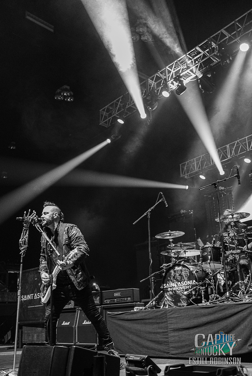 Saint Astonia was up first. They’ve had some band member changes over the years, but the core of Adam Gontier (Ex-Three Days Grace) and guitarist Mike Mushok (Staind) has remained. That combination has been the glue of Saint Astonia and their cohesiveness was on full-display in Pikeville. Saint Astonia performed many fan favorites including: “Better Place,” “Above It All,” “The Hunted,” “Never Too Late” (Three Days Grace cover), “I Hate Everything About You” (Three Days Grace cover), “I Don’t Care” (Apocalyptica cover), “Devastate,” and “Let Me Live My Life. While their set could have been a bit longer for my own greedy pleasure, they made the most of their time in Pikeville and delivered an absolutely electric performance.